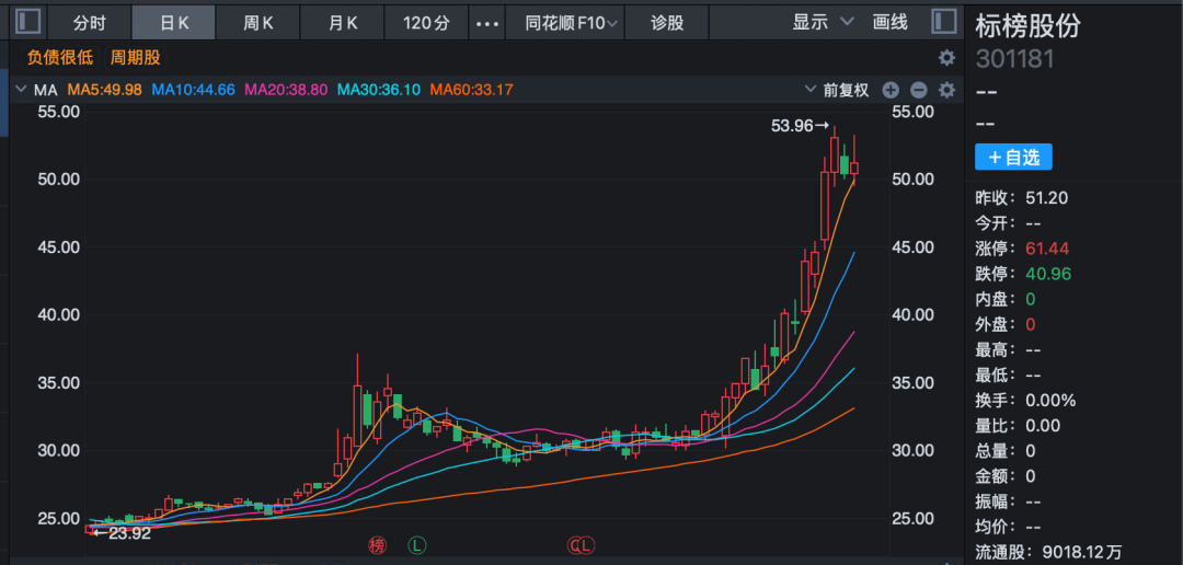 从筹划控制权变更事项至终止控制权变更,只过去了一周时间,其间标榜股份未曾交易。停牌前,标榜股份市值约59亿元。