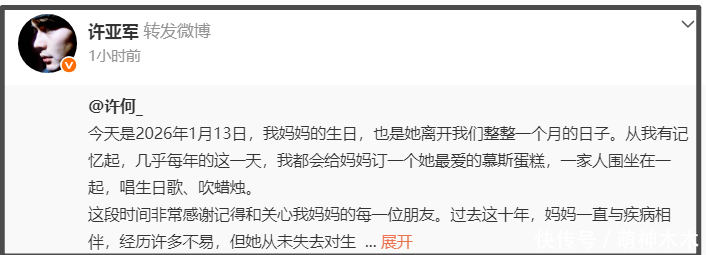 考古许何之前的微博,也能发现他几乎一直跟着爸爸许亚军一起生活,经常分享继母和弟弟的照片。但在妈妈生病后,微博就停更了。没想到如今重新发微博是这样的一个目的,也是倍感唏嘘。